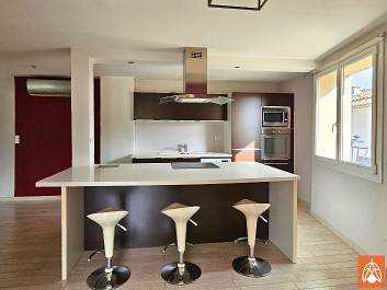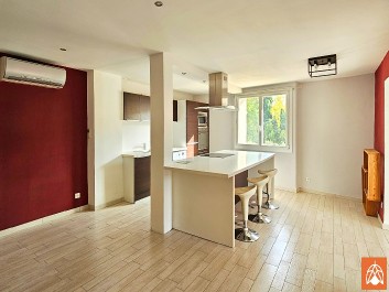 En parfait état d'entretien, le bien se compose d'une spacieuse pièce à vivre avec cuisine équipée moderne et îlot central, ouverte sur un séjour lumineux offrant un accès direct à la terrasse exposée Sud.
