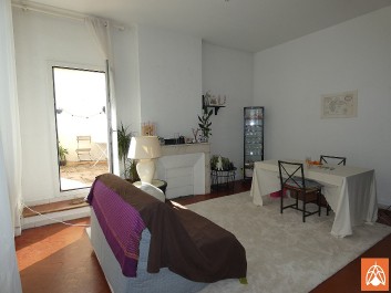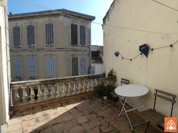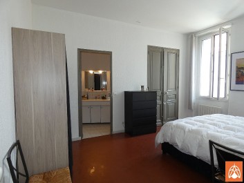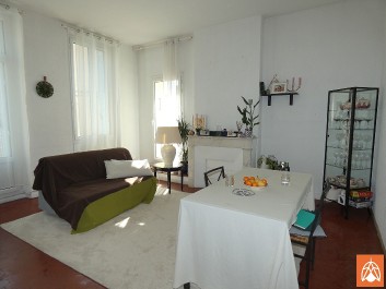 Il se compose d'un hall d'entrée, un séjour de 20 m² au charme de l'ancien (tomettes, cheminée, belle hauteur sous plafond) avec accès direct à une agréable terrasse, une cuisine indépendante, une grande chambre de 18 m² lumineuse, une salle de bain avec WC et un cellier.