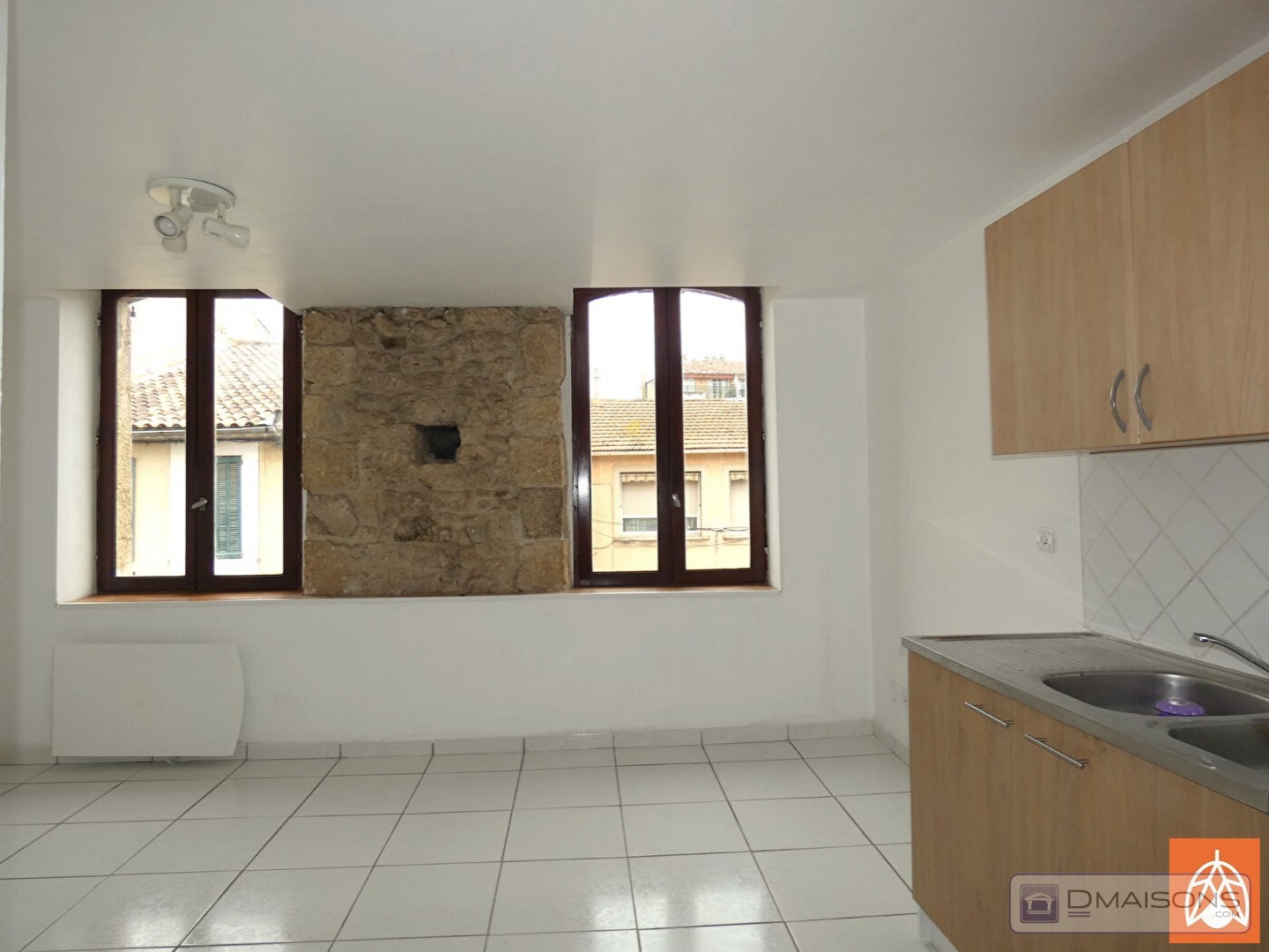 Il se compose d'un hall d'entrée, une agréable pièce de vie de 17 m² avec cuisine ouverte, agrémentée d'un joli mur en pierres apparentes qui apporte beaucoup de charme ; une chambre, une salle d'eau et un WC indépendant.