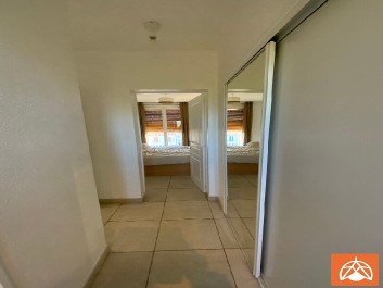 Exposés Sud, un séjour de 15m² avec une chambre attenante (10.86m²), puis un grand placard dans le couloir avec une chambre indépendante (10.80m²).